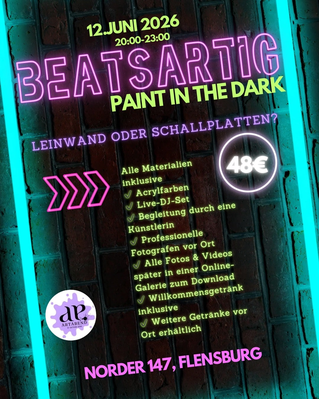 Erlebe ein einzigartiges Art-Event mit Live-Musik, Schwarzlicht und kreativer Atmosphäre.